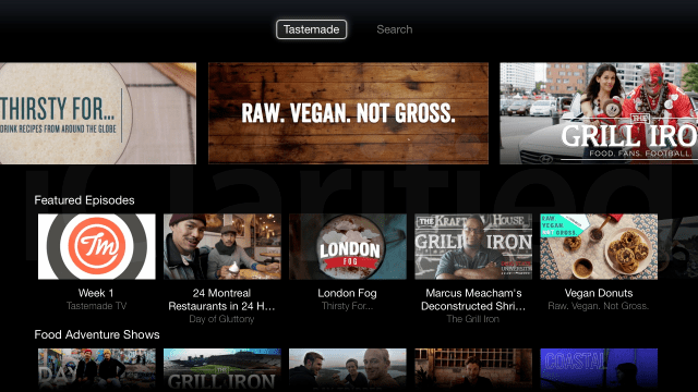 Tastemade With today’s launch, Tastemade now provides hundreds of episodes of its premium original programming to millions of Apple TV users. Tastemade does not require authentication and offers instant access to its large, HD library of food and travel programming at anytime and anywhere around the globe.