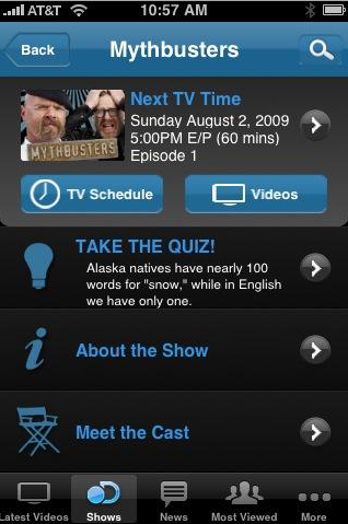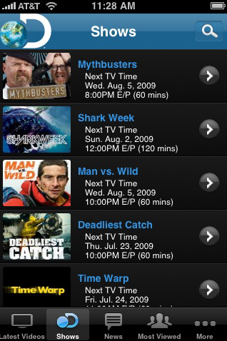 The Discovery Channel iPhone app broadcasts new videos, daily news stories, quizzes, photos, TV schedules and more.