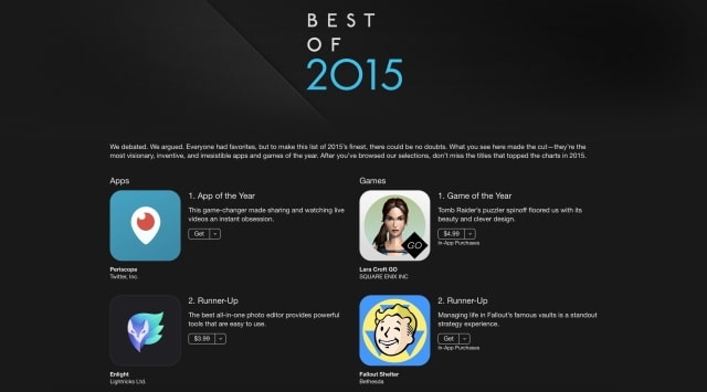 Apple Reveals Its Selections for the Best Apps, Games, Movies, TV Shows, and Music of 2015