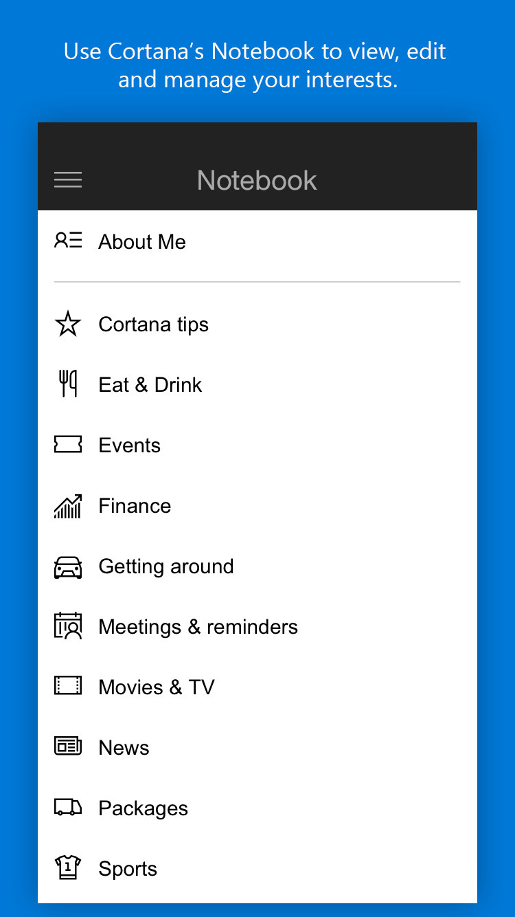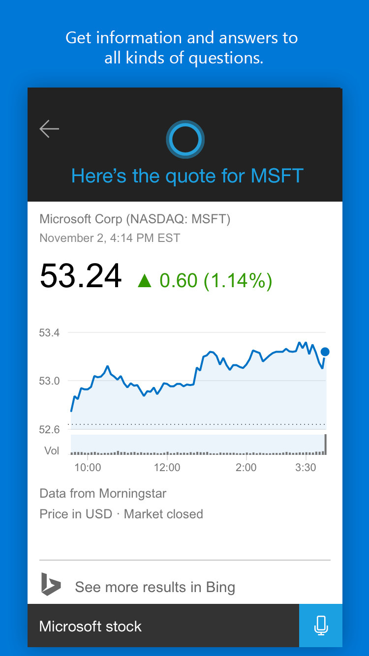 Features: • Set and get location and time reminders across your PC and phone. • Track packages, flights, scores, stocks, and other important info across your PC and phone. • Use Cortana’s Notebook to view, edit and manage your interests • Get information and answers to all kinds of questions. If you’re looking for it, Cortana can help find it. • Have a little fun in your down time — ask anything, get jokes, and much more.