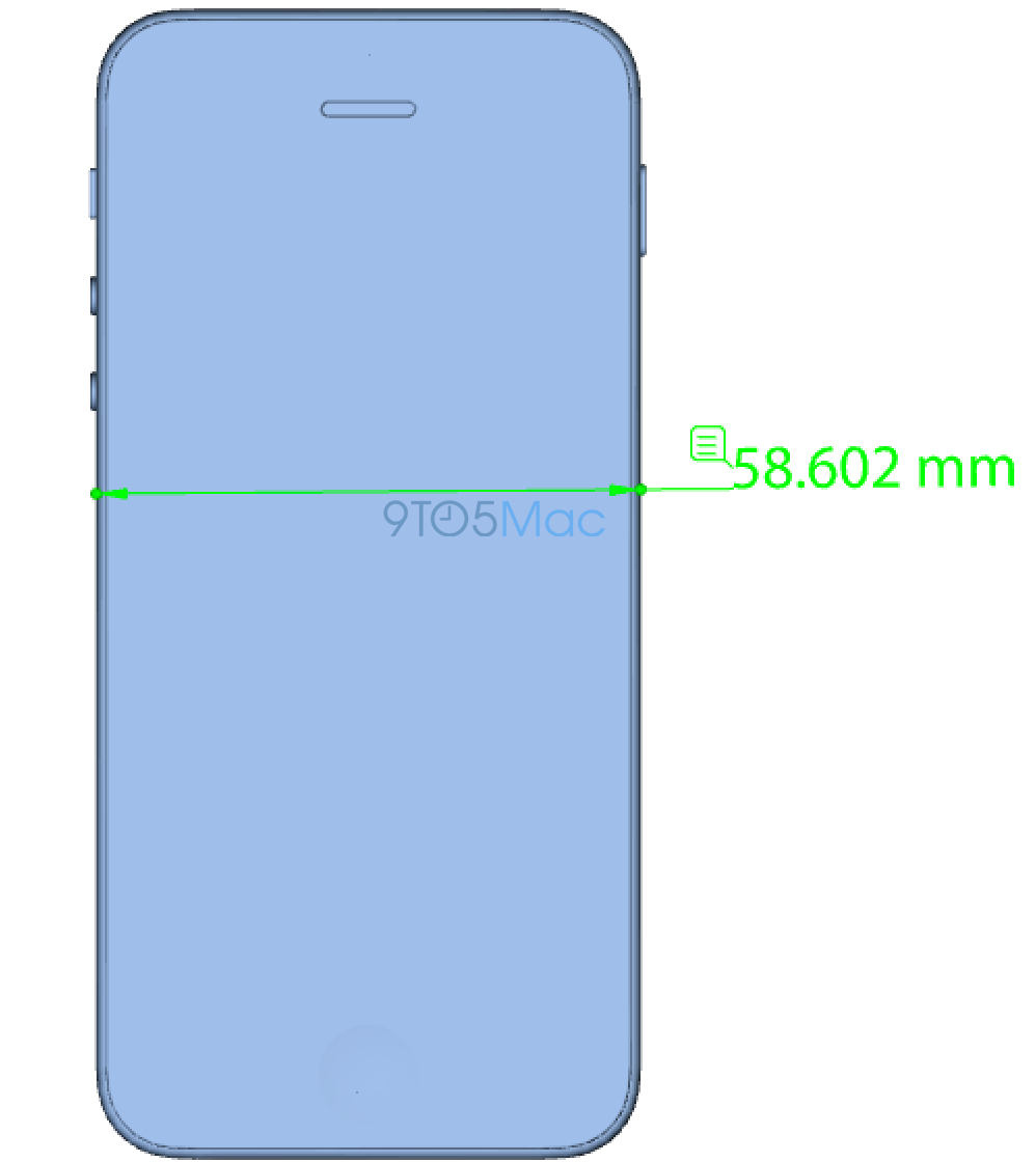 The case maker source tells us that the product’s dimensions are indistinguishable from the iPhone 5s, meaning that the new device will fit inside of existing iPhone 5s cases. There are a couple of changes, however, on our drawings. First, these schematics indicate that the sleep/wake/power button has been relocated to the side.