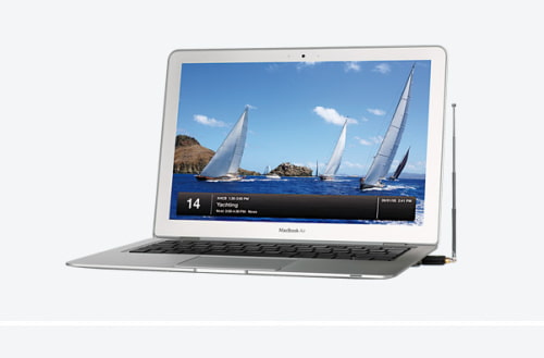 The very smallest full-featured DVB-T stick available anywhere, EyeTV DTT Deluxe is a perfect fit for any Mac or PC. It slips easily into the USB port of any Netbook or even a MacBook Air without blocking other devices.