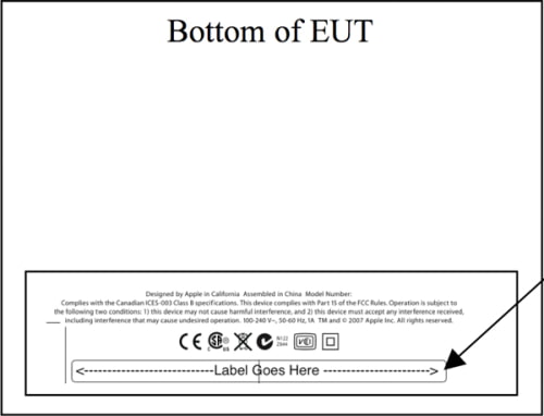 We're looking at models A1354 and A1355, a pair of 802.11 a/b/g/n 3x3 access points with the exact same, nondescript label picture that indicates some heft to the unit. There's not much to say here, although the A1354 had a revision on the antenna gain in the 5.8GHz band.