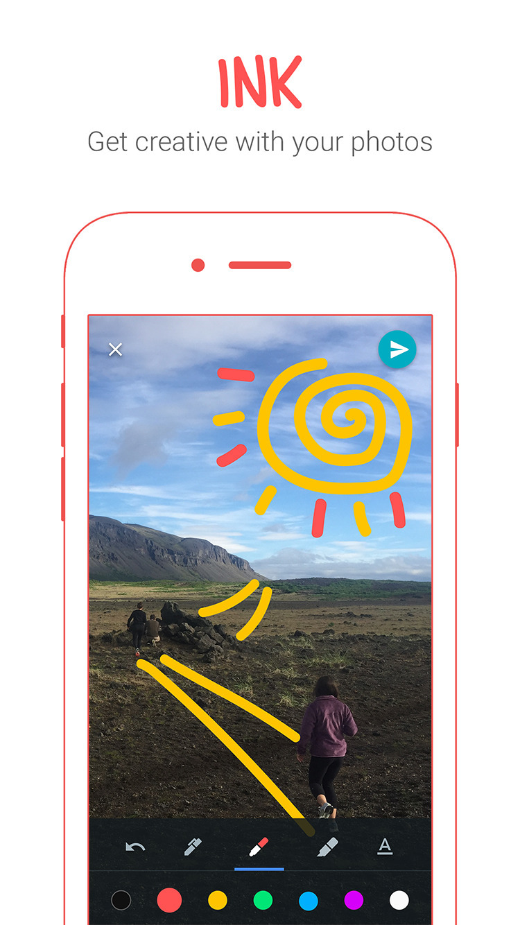 ● Ink: Get creative with the photos you send by doodling on them or adding text.