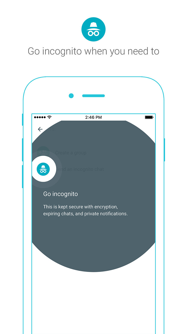 ● Incognito mode: Send messages with end-to-end encryption, use private notifications to help keep your chats more discreet, and control how long your messages stick around with expiring chats.