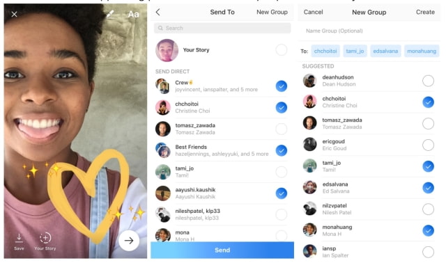 Disappearing Photos and Videos for Groups and Friends in Instagram Direct Now you can send disappearing photos and videos directly to groups and individual friends. Swipe right into the camera to take a photo or video, then tap the arrow to send it privately. You can choose a group or create one in just a few taps — and you can also send to individual friends at the same time. Unlike other messages in Direct, these photos and videos disappear from your friends’ inboxes after they have seen them. And you’ll see if they replayed it or took a screenshot. Please note, you can only send disappearing photos and videos to people who follow you.