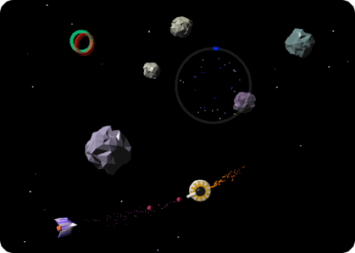 Quantum is a fresh new take on the classic game of Asteroids, with a black hole relentlessly pulling everything into its inky maw. Unlike the original arcade game, rocks realistically collide with each other, and the player must account for the black hole's gravity when moving and shooting.