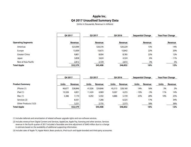 Apple Reports Q4 FY17 Earnings: $52.6 Billion in Revenue, 46.7 Million iPhones Sold [Chart]