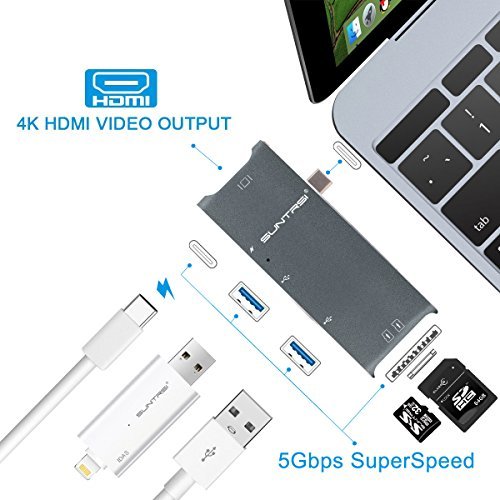 Suntrsi USB Type c / HDMI hub 2-Port USB 3.0 Data Hub with C-type charging port HDMI 4K output TF SD card reader for the new Macbook