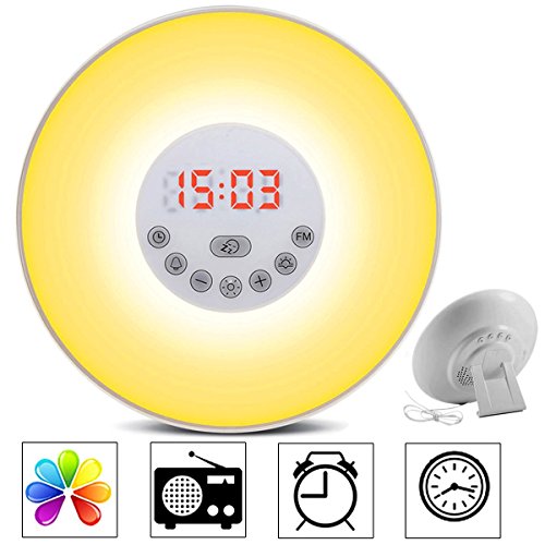 totobay Wake Up Light, {2nd Generation} Sunrise Simulation Snooze Alarm Clock Bedside Night Light with Nature Sounds, FM Radio, Touch Control and USB Charger