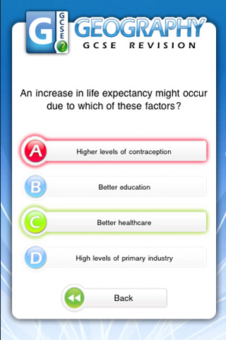 The app, GeoRev, is designed to help students revise for their Geography GCSE exam and consists of 600 multiple-choice questions. These questions are separated into 15 topic areas with both foundation and higher tier options. The topic areas aim to incorporate the majority of material required by major exam boards.