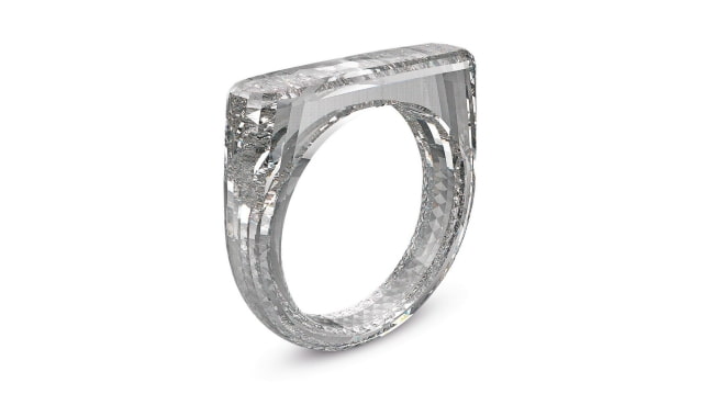 Jonathan Ive, Chief Design Officer at Apple, and Marc Newson, industrial designer, have created an all-diamond ring for the (RED) charity auction. The piece is officially called 'THE (RED) DIAMOND RING' and is estimated to sell for around $150,000 - $250,000.