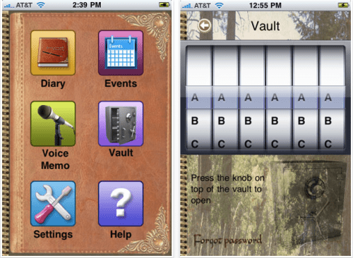 * Vault - In order to provide the maximum privacy, the vault is designed to have its own password protection options through the vault settings screen. Once you are in, you can enter the type and value of any information you want to keep locked up.