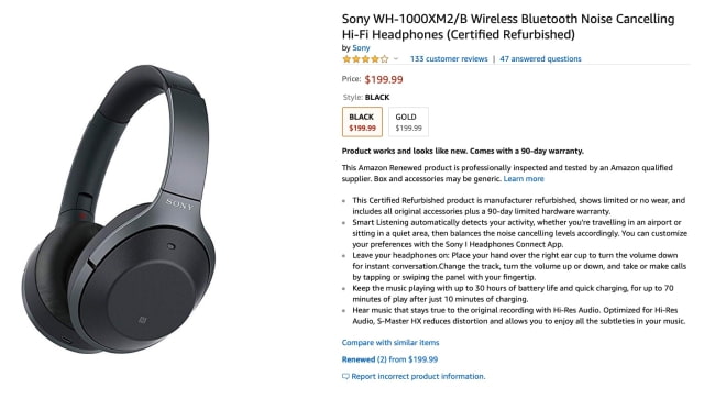 The Sony WH-1000XM2 wireless noise cancelling headphones are some of the most popular headphones around but they come with a $349.99 price tag. If you don't mind buying refurbished, these headphones are now available for $199 .99 with a 90 day warranty on Amazon.