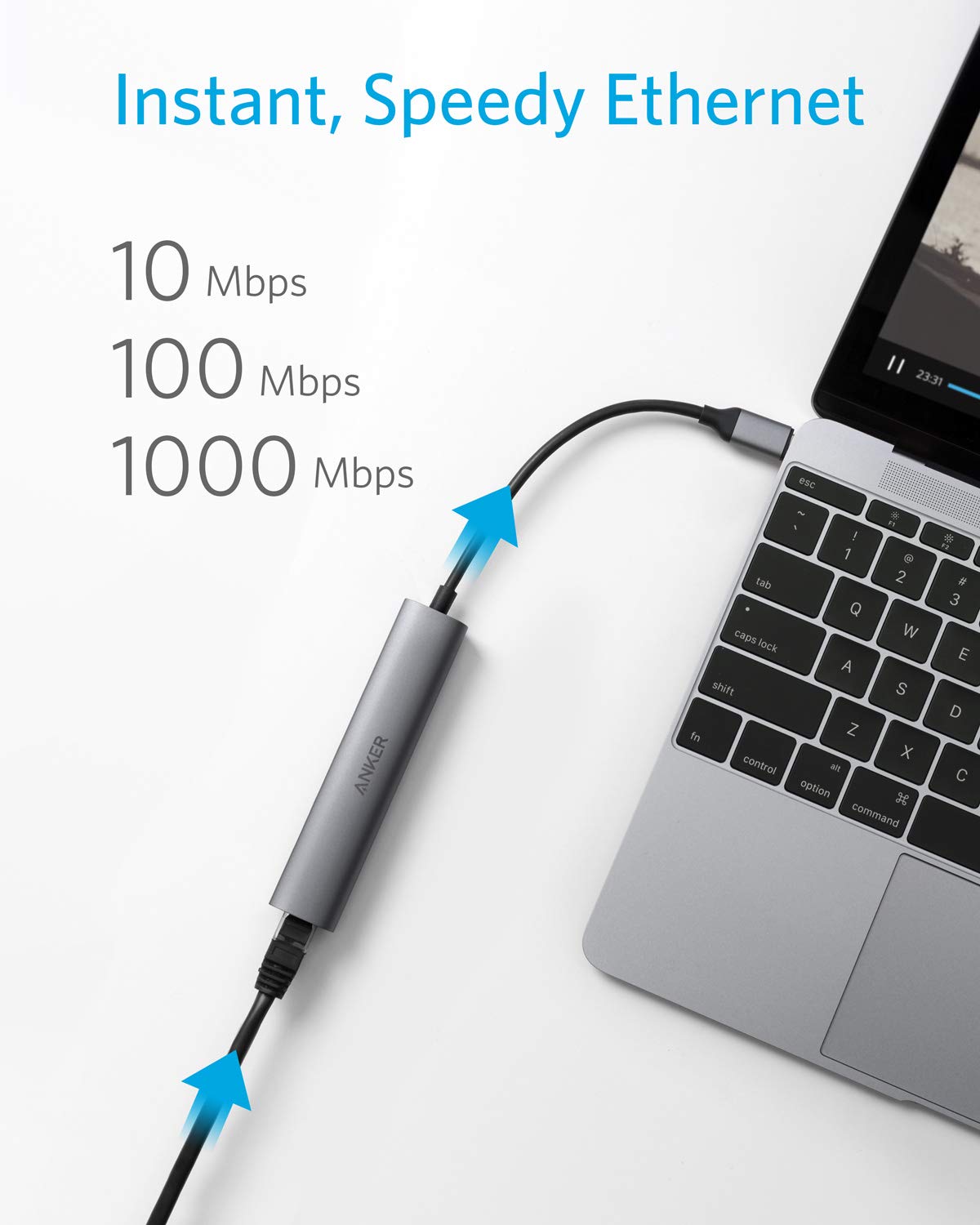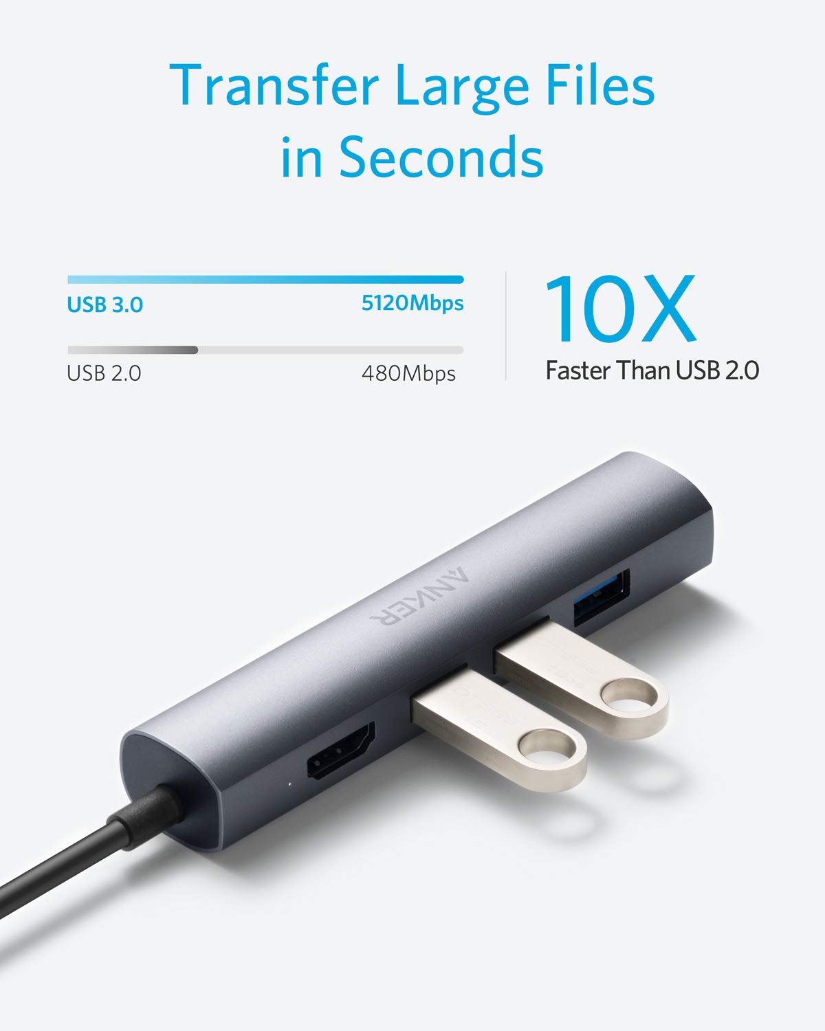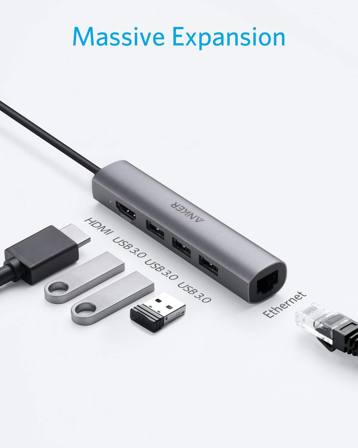 Features: ● Massive Expansion: Unlock the potential of your USB-C port with USB-A (data only), HDMI, and Ethernet functionality. ● Instant Internet: Instantly connect via a Plug-and-Play wired ethernet connection (1 Gbps). ● Vivid Video: Steam media to a large monitor or TV in stunning 4K @ 30Hz. For 60Hz frequency, set the definition of your device to 2K. ● Temperature Control: Advanced internal components keep the hub cool during operation. ● Travel Pouch Included: Keep your hub’s ports protected from dust and scratches with the included protective travel pouch. ● The Anker Advantage: High-speed charging. Leading technology. Join our family of over 30 million happy users, and change the way you charge.