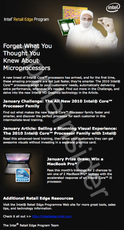 Intel may have accidentally revealed Apple's plans to release a Core i5 MacBook Pro in an e-mail sent out to members of the Intel Retail Edge Program.