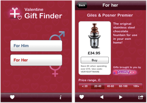 VerySoftware has announced the release of a free Valentine's Day app for the iPhone and iPod touch. Valentine Gift Finder is a great app to find the perfect gift for your Valentine. Find a gift for your loved one: we've teamed up with one of the best gift providers, Prezzybox, so that you can treat your most loved ones with something special.
