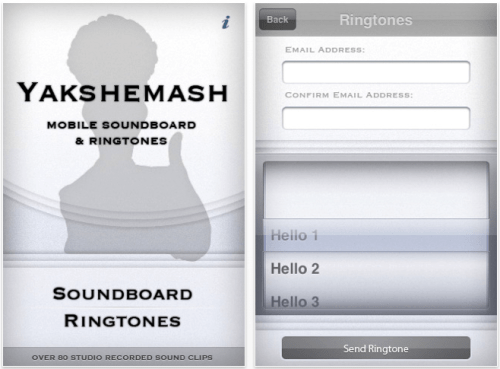The fun doesn't stop there though. Why not call your friends (iPhone only) and then load Yakshemash. You will have hilarious moments using Yakshemash to prank call your friends and family. On top of the soundboard we have included a section of the application that allows you to use any of our 82 clips as your ringtone. (iPhone)