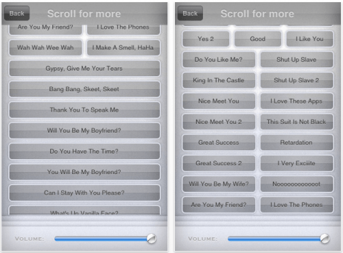 Poor Impersonations = Poor Applications. Don't be disappointed! Yakshemash is your perfect pocket soundboard. All clips are professionally recorded at the highest volume. Other applications have issues with sound not working or sounds not loud enough. We have included a volume slider within the application that will take care of any of these problems immediately.