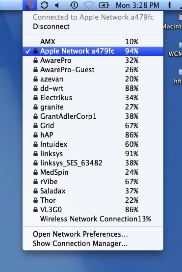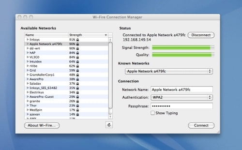 hFields new version 2.0 for Mac runs from a convenient unobtrusive icon in the Macs Menu Bar, just like AirPort. All of the important details about the connections around you and youll see plenty with the Wi-Fire are revealed in the new GUI interface, which is easily launched from the Menu Extra.