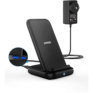 Anker Wireless Charger, PowerWave 10 Stand with 2 USB-A Ports, 7.5W for iPhone 11, 11 Pro, 11 Pro Max, XS Max, XR, XS, X, 8, 8 Plus, 10W for Galaxy S10 S9 S8, Note 10 Note 9, DC Adapter Included$29.99 (-40% from $49.99)