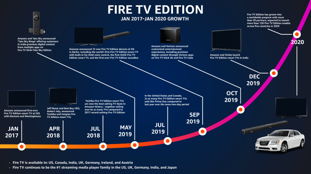 “At CES 2017, we announced the first Fire TV Edition smart TV. Now, just three years later, Fire TV Edition has grown into a worldwide program which will include more than 150 Fire TV Edition models across more than ten countries by the end of the year,” said Marc Whitten, Vice President, Amazon Fire TV. “Our expanded Fire TV Edition program provides companies with the services and tools they need to bring Fire TV to more categories and more screens.”