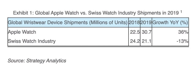 The Apple Watch outsold the entire Swiss watch industry in 2019 by a huge margin, according to a new report from Strategy Analytics. Apple purportedly shipped 31 million units worldwide last year compared to just 21 million for all Switch watch brands combined.