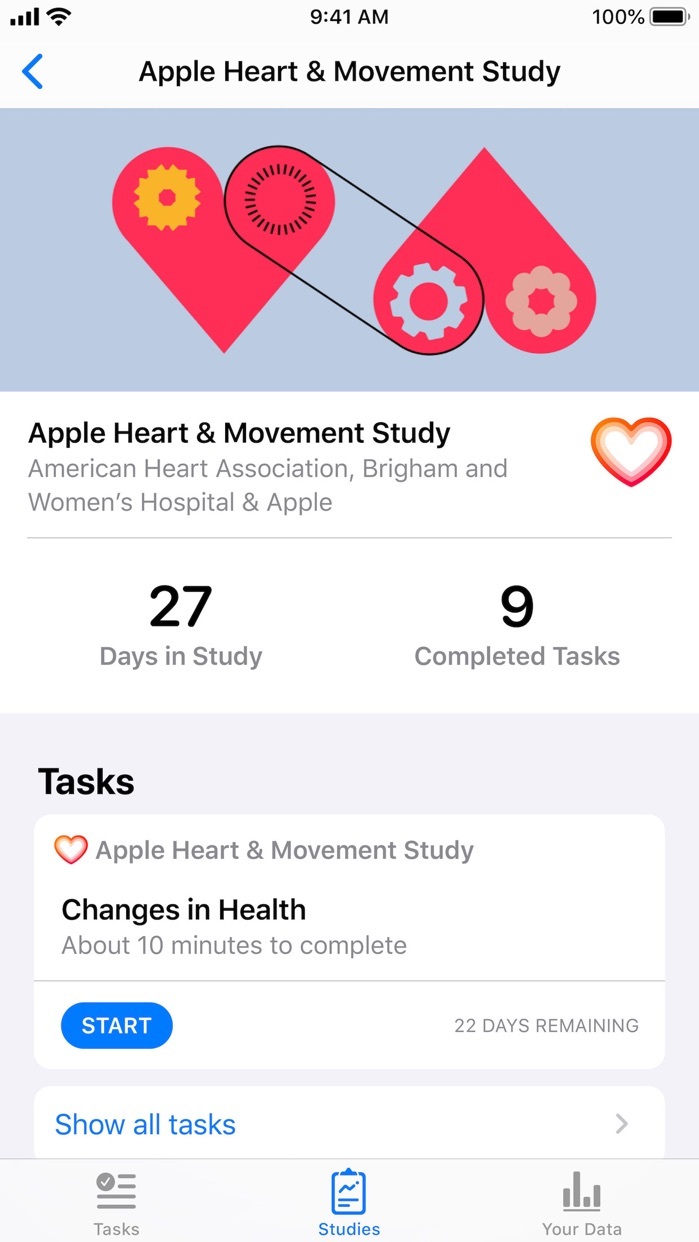 ● Join the Apple Heart and Movement Study, conducted in partnership with the American Heart Association and Bringham and Women's Hospital to help advance discovery in heart science and to help us learn how activity and your habits can contribute to a healthier heart.