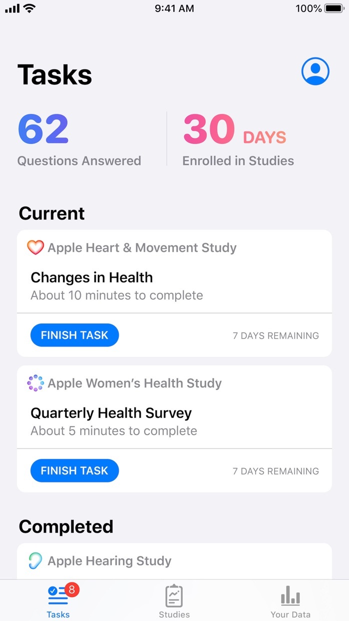 The future of health research is you! Now you can contribute to groundbreaking health research in women’s health, hearing health or heart health simply by using your Apple Watch and iPhone, and the Research app. Your data and participation will help advance researchers' understanding of these areas in health that have not been well understood until now and could lead to the development of new products that will help millions lead longer and healthier lives