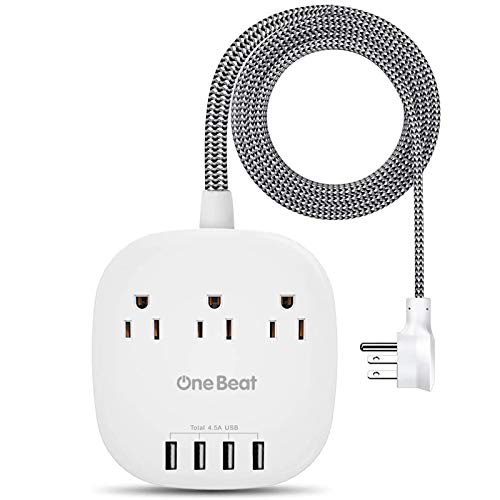 Desktop Power Strip with 3 Outlet 4 USB Ports 4.5A, Flat Plug and 5 ft Long Braided Extension Cords for Cruise Ship Travel Home Office, UL ETL Listed, White$15.29 (-24% from $19.99)