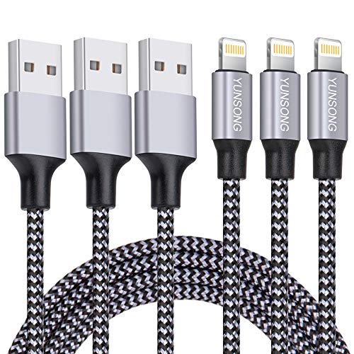 iPhone Charger, YUNSONG 3Pack 6FT Nylon Braided Lightning Cable Charging Cord USB Cable Compatible with iPhone 11 Pro Max XS XR X 8 7 6S 6 Plus SE 5S$8.03 (-20% from $9.98)