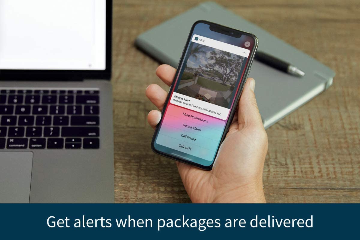 Features ● Smarter alerts, quicker action: React quickly to events that happen, right from your phone. ● Never miss a visitor: Receive a video call to your phone, when your doorbell button is pressed. ● More packages, less contact: Safely see and speak to delivery people from inside your home. ● See from head to toe: See a person from head to toe or a package on the ground with 180º view. ● Protection year-round: Built to withstand the heat, cold, rain, or sun. ● More ways to answer: Hear and speak to visitors with 2-way audio or with pre-recorded messages. ● Built-in siren: Trigger your siren automatically or manually from the Arlo app. ● Works with Alexa: See who's at the front door with your Alexa device.