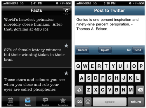 Pricing and Availability: Deep Stuff - Facts and Quotes Pro 1.0 is $1.99 (USD) and available exclusively through the App Store in the Books category. An iPad edition of the application will be released when the iPad becomes available in Late March.
