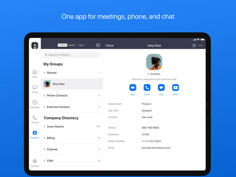 ● Support for iPad Pro Center Stage face tracking feature (iPad only): The Zoom app takes advantage of the new Center Stage face tracking ability released with 2021 iPad Pros, which tracks the user as they move within the possible video frame. This can be enabled/disabled through an in-meeting option when the device supports this feature, and the decision is remembered for future meetings.