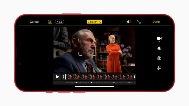 The Most Advanced Dual-Camera System in iPhone iPhone 13 and iPhone 13 mini represent a massive leap in camera design with advancements in hardware and computational photography that deliver stunning photos and videos. The new Wide camera, with 1.7 µm pixels, comes with the biggest sensor ever in an iPhone dual-camera system and is capable of gathering 47 percent more light for less noise and brighter results. Sensor-shift OIS — a technology introduced in iPhone 12 Pro Max and not found in any other smartphone — also comes to the Wide camera, even in the more compact iPhone 13 mini. It stabilizes the sensor instead of the lens so shots are more steady, while the custom-designed Ultra Wide camera with a new sensor captures images with more detail in the dark areas of photos and videos with less noise. Following extensive study of cinematography and the powerful use of rack focus, Cinematic mode on iPhone records videos of people, pets, and objects with a beautiful depth effect with automatic focus changes, so anyone can capture cinema-style moments, even if they aren’t a professional filmmaker. For creative control, the focus can be changed during and after capture, and users can also adjust the level of bokeh in the Photos app and iMovie for iOS, and coming soon to iMovie for macOS and Final Cut Pro,5 making the iPhone 13 lineup the only devices able to edit the depth-of-field effect in video even after recording. Enabled by A15 Bionic and advanced machine learning algorithms, Cinematic mode records in Dolby Vision HDR. Both models also offer HDR video recording with Dolby Vision — from capture to editing and sharing — now supported for 4K up to 60 fps on all cameras.