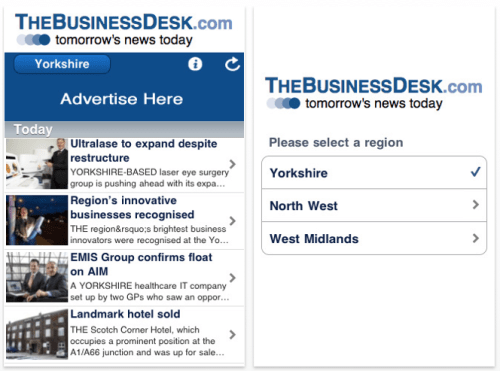 "When we launched three years ago, we were the first regional provider of online business news. Having built up more than 35,000 registered users across our sites, it is important that we continue to innovate and make it as easy as possible for our users to access up to the minute regional news whether in the office or out and about," said TheBusinessDesk managing director David Parkin.