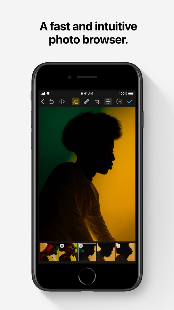 New Photos Library Browser • Browse and open photos more quickly and easily in the new filmstrip-style browser. • Jump between photos and quickly jump into edits with just a few taps.