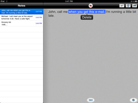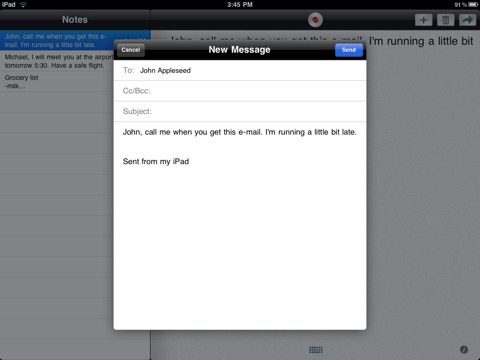 Dragon Dictation has released an iPad application which lets you use voice recognition to compose text messages, emails, and other documents.