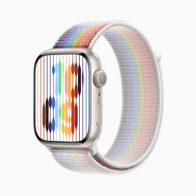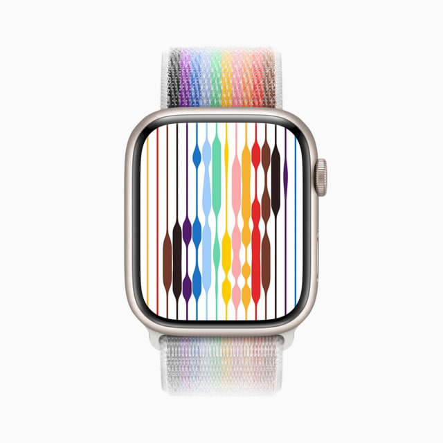 Inspired by multiple pride flags, this new watch face combines colors to represent the strength and mutual support of the LGBTQ+ movement. Mirroring the woven loops of the Sport Loop, each strand of vibrant thread contributes to the overall composition of the watch face. The colorful threads move as the Digital Crown on Apple Watch is rotated, the display is tapped, or the user’s wrist is raised. Apple is also including new App Clip functionality within the band packaging to deliver a simple and convenient way for customers to immediately access the new matching watch face.
