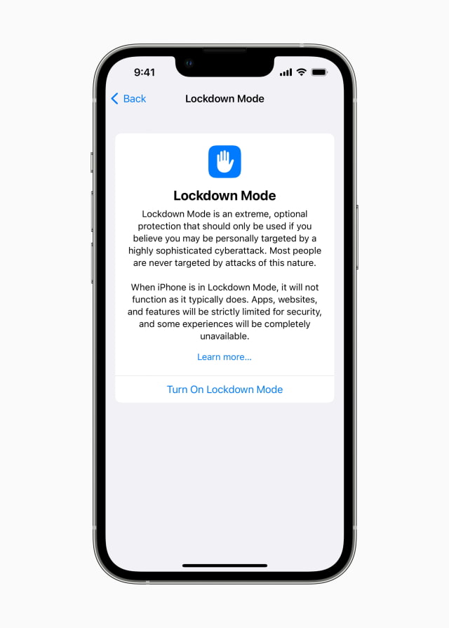 Apple today detailed two initiatives to help protect users who may be personally targeted by some of the most sophisticated digital threats, such as those from private companies developing state-sponsored mercenary spyware. Lockdown Mode — the first major capability of its kind, coming this fall with iOS 16, iPadOS 16, and macOS Ventura — is an extreme, optional protection for the very small number of users who face grave, targeted threats to their digital security. Apple also shared details about the $10 million cybersecurity grant it announced last November to support civil society organizations that conduct mercenary spyware threat research and advocacy.