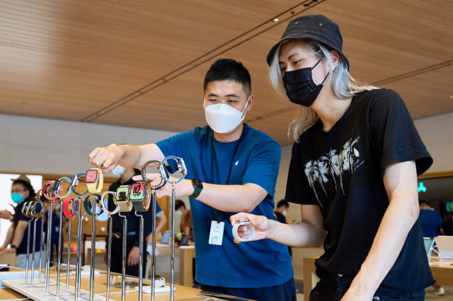 On Friday, September 16, iPhone 14, iPhone 14 Pro, iPhone 14 Pro Max, Apple Watch Series 8, and the all-new Apple Watch SE land at Apple stores around the world. Apple team members celebrate the arrival of the latest innovative products and are ready to support customers with exceptional service and personalized shopping assistance.