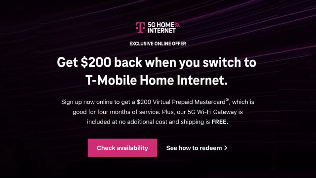 T-Mobile is now offering a $200 virtual prepaid Mastercard to users who sign up for its Home Internet service.
