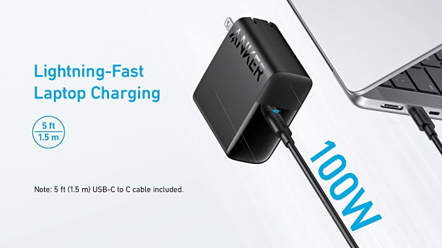 Anker's powerful new 100W USB-C Charger is on sale today for just $28.79. The power adapter is able to recharge a 16-inch MacBook Pro (M1 Max) in 1h 20m and it comes with a 5ft USB-C to USB-C cable.
