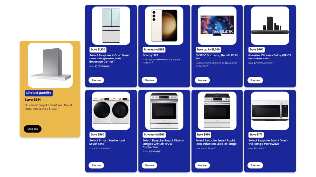Flash Deals: These deals are available for the next four hours only. There are also only a LIMITED QUANTITY available of each item. ● Bespoke Smart Wall Mount Hood - Save $524