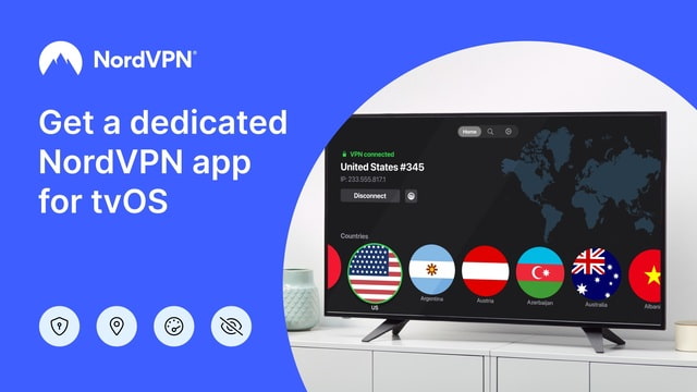 Securing your connection on Apple TV has never been easier — now you can use our NordVPN app directly on tvOS. Watch your local content securely, avoid video buffering, and shield your online activity with one click. Our NordVPN app is now natively supported on tvOS 17.