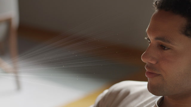 Apple Vision Pro also features a high-performance eye tracking system that uses high-speed cameras and a ring of LEDs that project invisible light patterns onto the user's eyes for responsive, intuitive input. And to help the user stay connected to the people around them, Apple designed a groundbreaking new feature called EyeSight. When a person approaches someone wearing Vision Pro, the device looks transparent — letting the user see them while also displaying the user's eyes. When a user is immersed in an Environment or using an app, EyeSight gives visual cues to others about what the user is focused on.