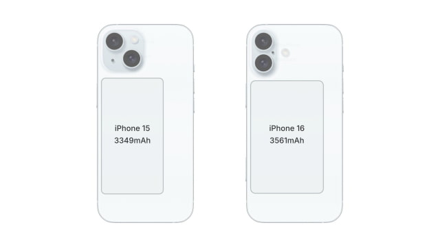 For the iPhone 16, this would be a 6.33% increase from 3349mAh to 3561mAh. The iPhone 16 Plus would go down 9% from 4383mAh to 4006mAh and the iPhone 16 Pro would increase 5.74% from 4422mAh to 4676mAh.