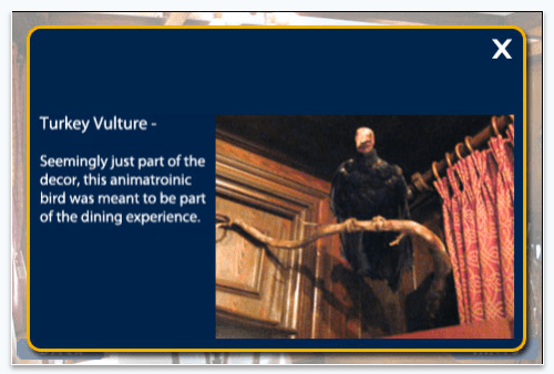 Club 33, a new app available for the iPhone and iPod touch, takes users on a picture tour of the famous Club 33 at Disneyland. Touch the images to explore over 12 different scenes from inside Walt Disney's exclusive and private club above the Pirates of the Caribbean ride at New Orleans Square. Users can discover 'hotspots' within each scene which trigger popups containing detailed information and images about the artwork, features, and decor of this restaurant few will ever get the chance to visit.