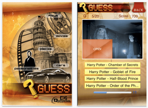 Demansol, the developers of Treasure Hunt: The Ultimate Memory Game, brings to you another iphone game/application named "Guess". This is an engaging game that progressively challenges the players memory skills, thereby improving it. The objective of the game is to guess the picture hidden behind the envelopes. The player may open as many envelops as he chooses to. Opening envelops reveals a part of the picture. The lesser envelops opened to guess the picture, the better you score. However, the player does not have much time to do that, as the picture needs to be guessed within 30 seconds.