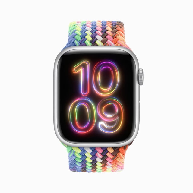 Apple is introducing a new Apple Watch Pride Edition Braided Solo Loop, available to order starting May 22, along with a matching watch face and dynamic iOS and iPadOS wallpapers, available in an upcoming software update. For the first time, the Pride watch face and wallpapers can be customized to showcase a spectrum of colors representing the vibrancy and diversity of LGBTQ+ communities.